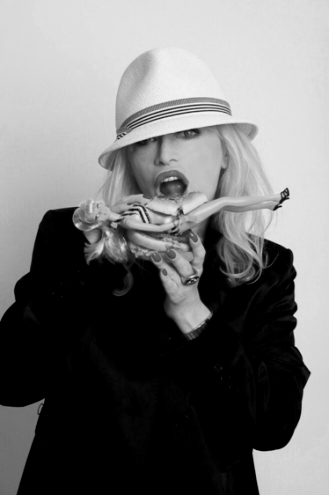 Einen Tag später. Manolo Blahnik macht 'nen Schuh. Silvia Kainka möchte auch wieder aufbrechen. " Mein Terminkalender ist voll! ", sagt sie mir am Telefon. " CU gleich, bin morgen wieder unterwegs. " Silvia muss geschäftlich nach Tokio fliegen. Vor ihrer Abreise besuche ich sie deswegen noch am Abend in ihrem Office.  Ganz schön locker: Beine, " Apple "-Laptop, Lipstick " Jungle Red " von Nars und Schampus auf dem Tisch - Ladyboss Silvia geht ihren Job eher unkonventionell an. Von Kopf bis Fuß auf lässig eingestellt. Was für andere harte Arbeit ist, kostet sie nur ein Lächeln. " Ich habe es immer als großes Glück betrachtet, dass ich nicht morgens um neun im Büro auftauchen muss. Ich habe keinen klassischen Nine-to-five-Job, weil ich mir die Arbeit selbst einteilen kann. Das ist eine kleine Freiheit. Und das ist die Rebellion des Rock 'n' Roll: Ich kann tun und lassen, was ich will - und wann ich will. YEAH I LIKE THAT." Sie duftet nach " Opium " von Yves Saint Laurent. Silvia trägt ein schwarzes Lederkleid von Gucci und flippige Schuhe von Jimmy Choo. Wie fast immer trägt sie auch einen Hut. Denn Hüte sind ihr Markenzeichen. Weil Mrs. Vipywood und ihre Komplizinnen immer hippe Hüte tragen, nennt man die coolen Ladies schon" The Hat Pack!" Silvia lächelt: " Wie sagte schon Paris Hilton: Dress cutte wherever you go, life is too short to blend in. " Zu ihren Favoriten im Modebusiness zählen u..a. Jean Paul Gaultier und Vivienne Westwood: " Das sind einige der Designer, die in der drögen Modewelt Mut zur Extravaganz zeigen! " Modeverrückt war sie immer schon. Wie es der Zufall wollte, lernten wir uns dadurch kennen. Ich traf sie zum ersten Mal 2009 auf dem Weg zur Pret-a-Porter-Modenschau von Chanel in Paris. Ein gemeinsamer Freund und Fashion-Designer machte uns bekannt.